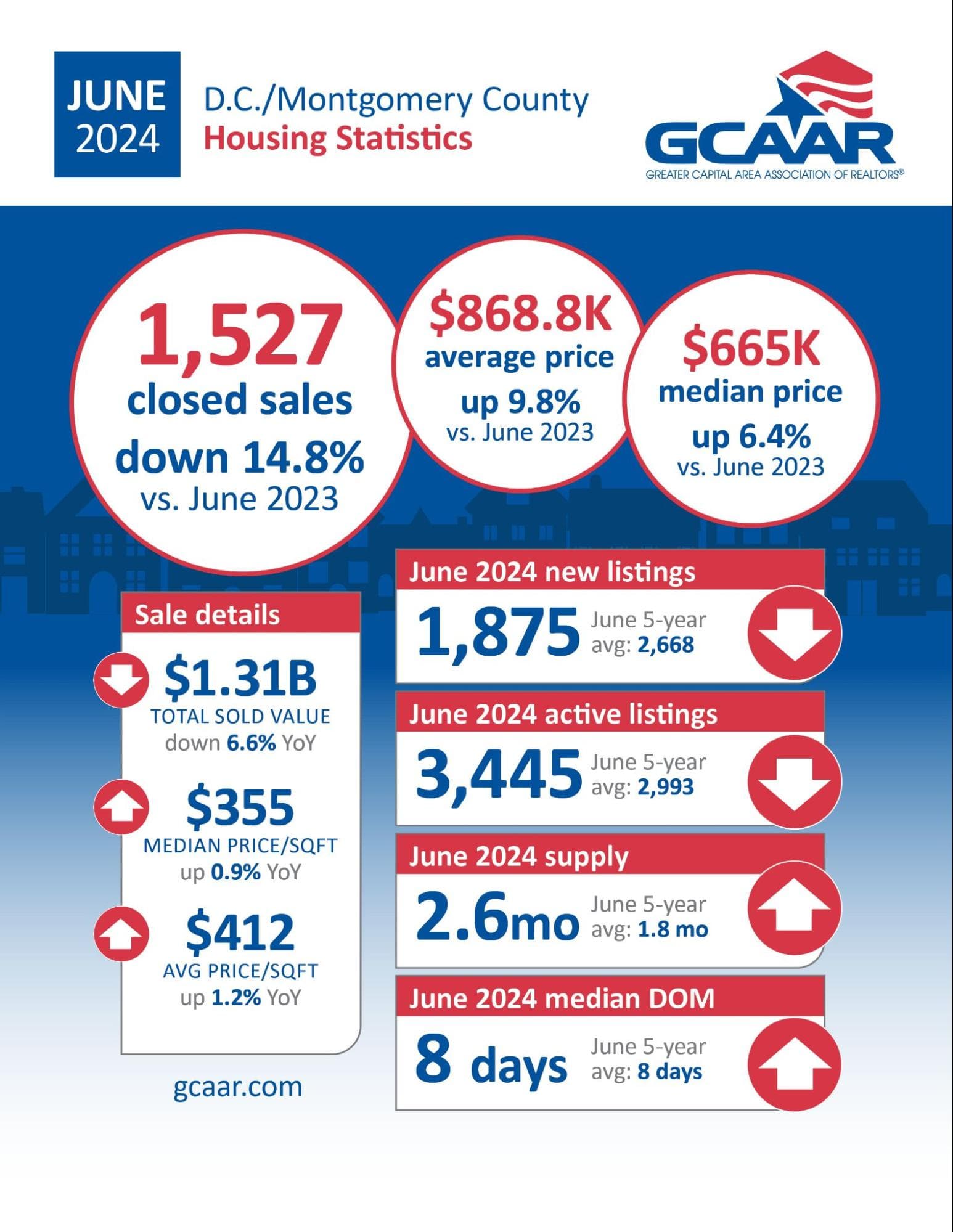 In June, the Washington D.C. metro area experienced a 12.2% decline in overall sales, compared to the same period last year. For the first half of the year, total sales were 3.6% lower than in 2023. Despite this downturn in sales activity, home prices continue to climb across the region.
